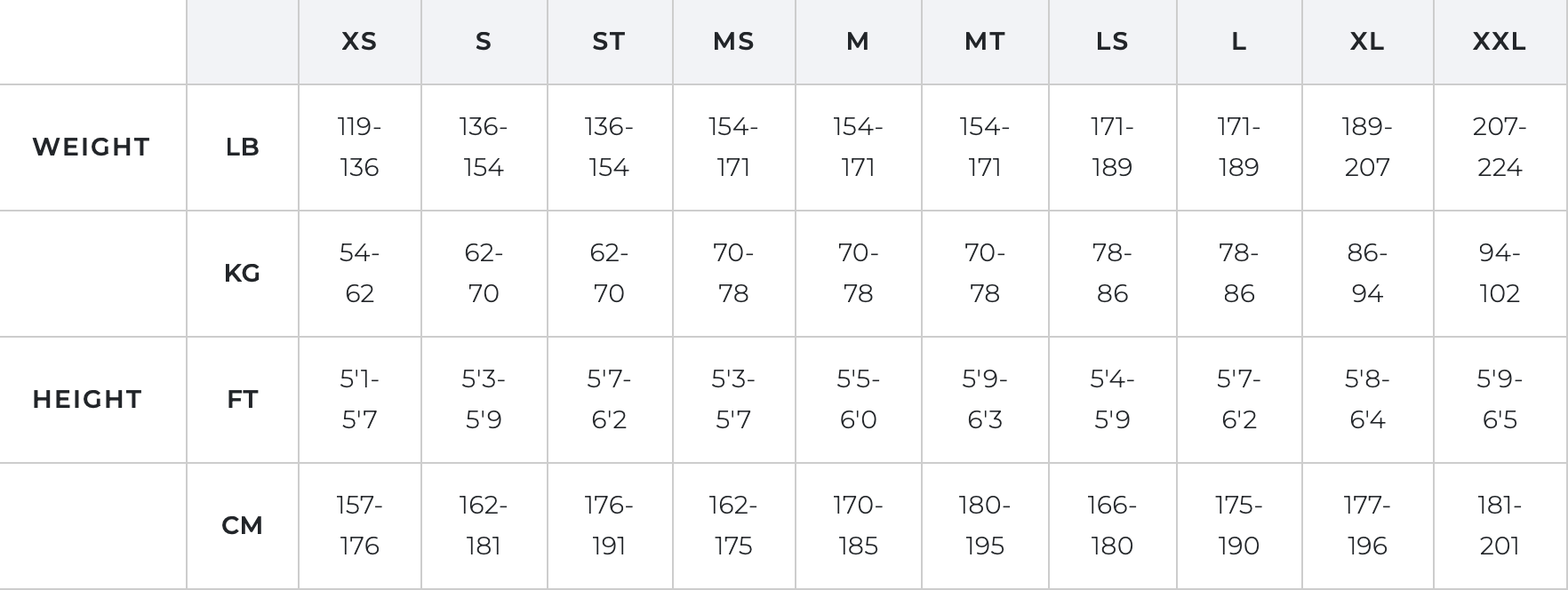 Przykładowo rozmiar MT będzie dla osób wysokich i szczupłych, a MS niskich i szczupłych. LS dla osób grubszych i niższych i tak dalej. Poniżej przykładowa rozmiarówka marki Manera