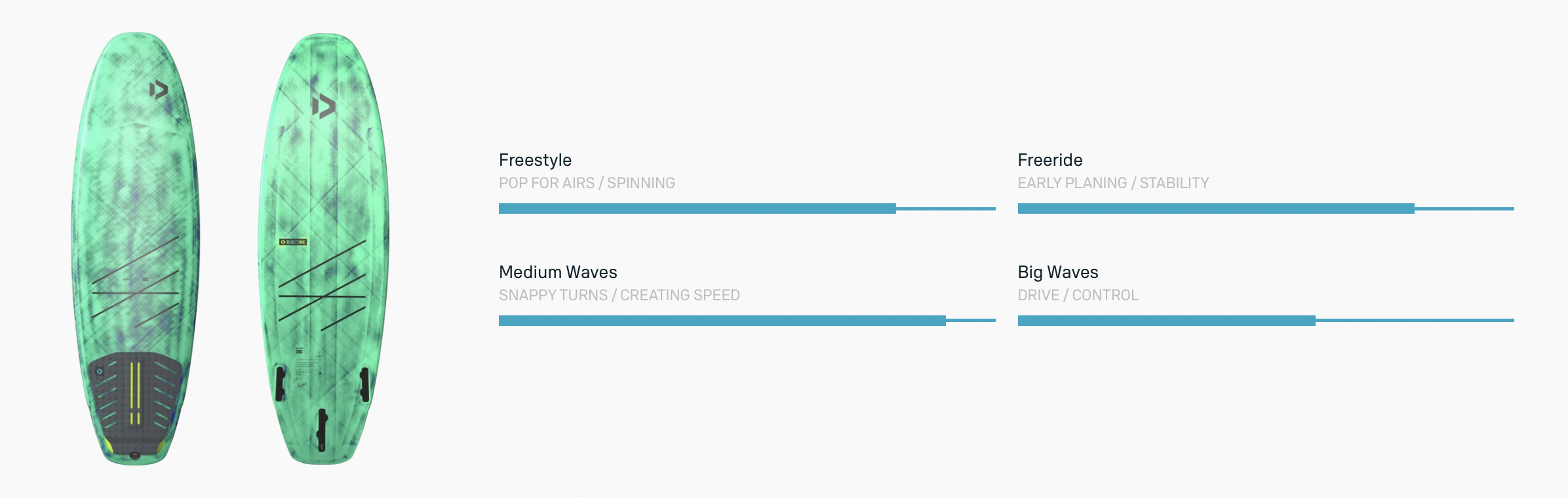 Whip SLS generuje niesamowitą prędkość, umożliwiając płynne ślizgi po wodzie i bezproblemowe pokonywanie sekcji fali. Riderzy docenią, jak łatwo można nabierać prędkości — zarówno podczas jazdy po falach, jak i przy wykonywaniu tricków.