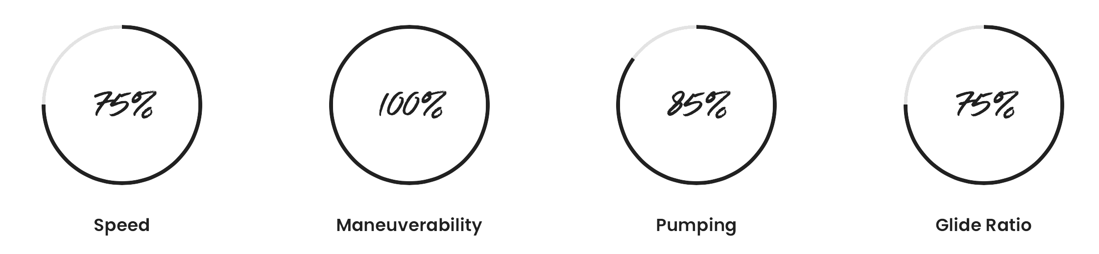 Niezależnie czy pływasz na małych fale, oceanicznych górkach, przejeżdżasz przez pianę czy łączysz carvingowe skręty – SK8 ze wszystkim radzi sobie świetnie. Przy wingfoilu imponuje wysoką prędkością i naturalnym ostrzeniem pod wiatr, pozwalając płynąć szybko i lekko bez przeciążania skrzydła ani ramion. Od gładkiej tafli po rozbity akwen – SK8 to Twój wybór, jeśli liczy się carving i czyste, prawdziwe surfowe czucie.
