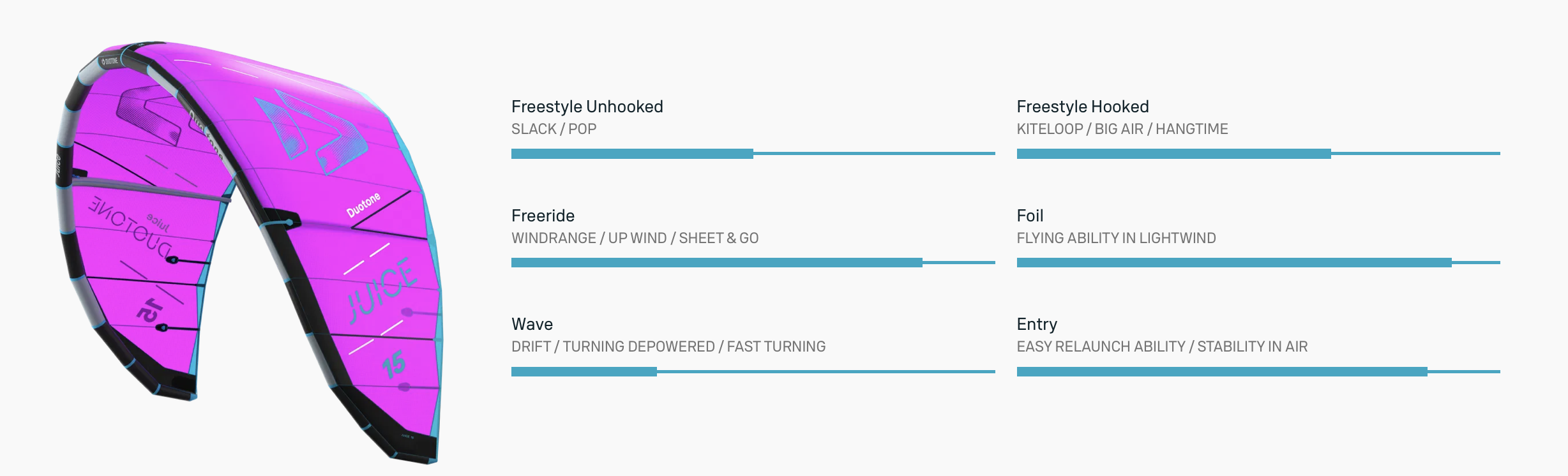 Duotone Juice to bezkompromisowa maszyna freeride’owa, stworzona do osiągania maksymalnej wydajności w minimalnych warunkach wiatrowych.