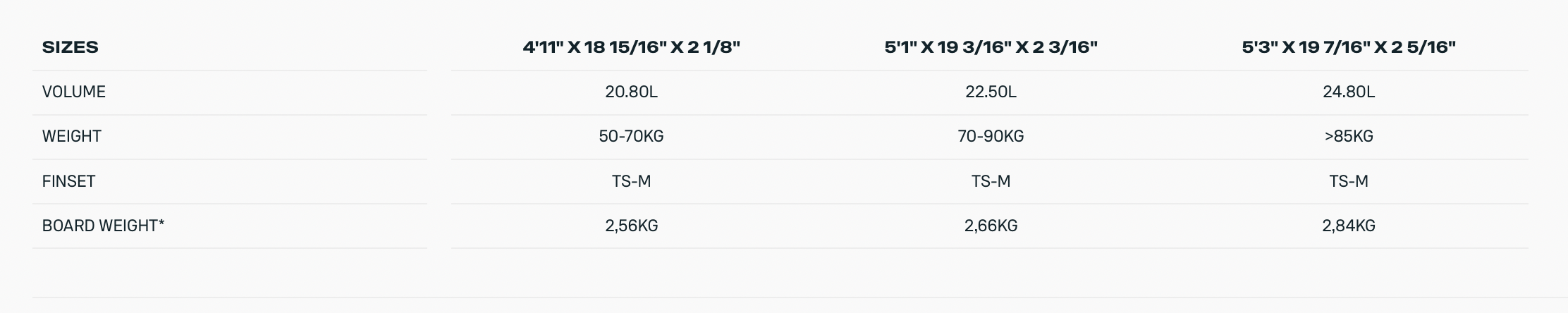 Volt D/LAB wyróżnia się konstrukcją o wysokich osiągach, zaczynając od niskiego rockera z przodu i podwójnego wklęśnięcia (double concave) dna, które zapewniają doskonałe generowanie prędkości. Nowy, krótszy i bardziej zaokrąglony kształt nadaje desce zwinność i responsywność, czyniąc ją idealnym wyborem na małe fale. Tym, co naprawdę wyróżnia Volt D/LAB, jest dodatkowa szerokość pod przednią stopą — pozwala ona maksymalizować frajdę z pływania w spokojniejszych warunkach, zachowując jednocześnie imponujące osiągi, gdy fale się poprawiają.