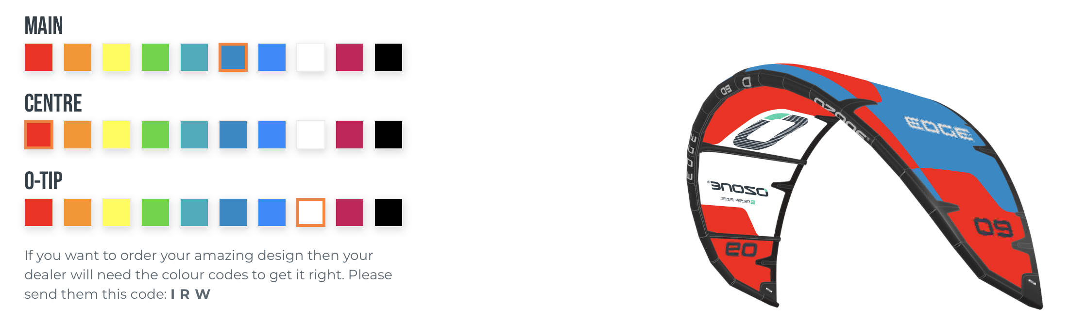 Stwórz swój wymarzony latawiec! Możemy wykonać dowolną kombinację kolorów, korzystając z poniższego selektora kolorów. Czas produkcji wynosi 30-40 dni. Zaprojektuj swój własny latawiec! Dla zainteresowanych prosimy o kontakt telefoniczny - 537 417 677.