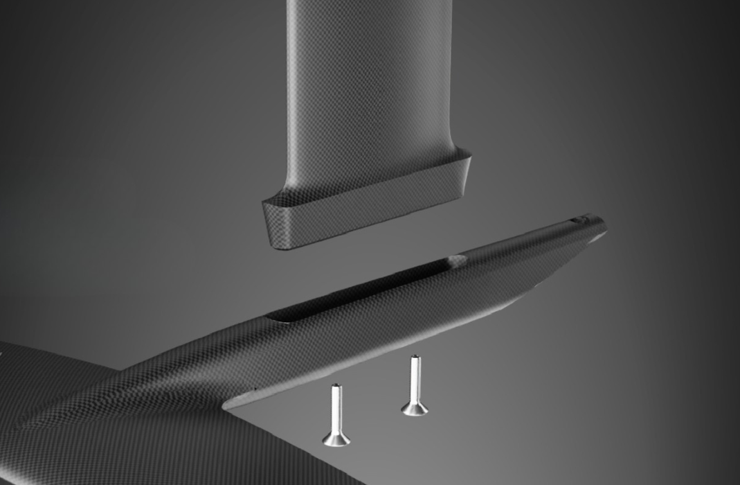 TITAN 2 wykorzystuje tylko dwie śruby M8 oraz wzmocnione połączenie strukturalne. Efekt to większa precyzja i szybsza reakcja na ruchy ridera, przy zachowaniu bardzo dobrych właściwości hydrodynamicznych. W praktyce oznacza to bardziej bezpośrednie czucie pod nogami, wydajniejsze pompowanie i mocniejsze, pewniejsze połączenie z foilem w każdych warunkach. Dodatkowa sztywność pozwala również stać wyżej na maszcie, co zmniejsza opór wody i optymalizuje glide.