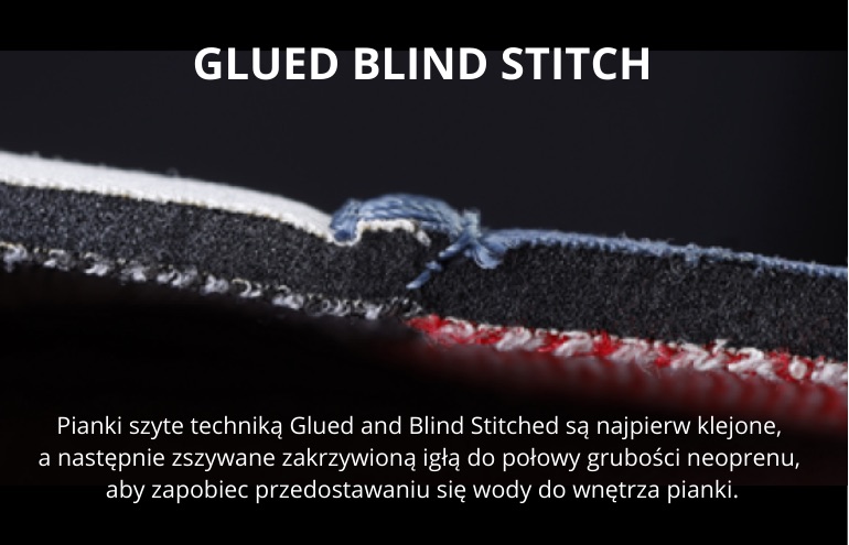 - klejone i ślepo szyte szwy (glued-blind stitching)
